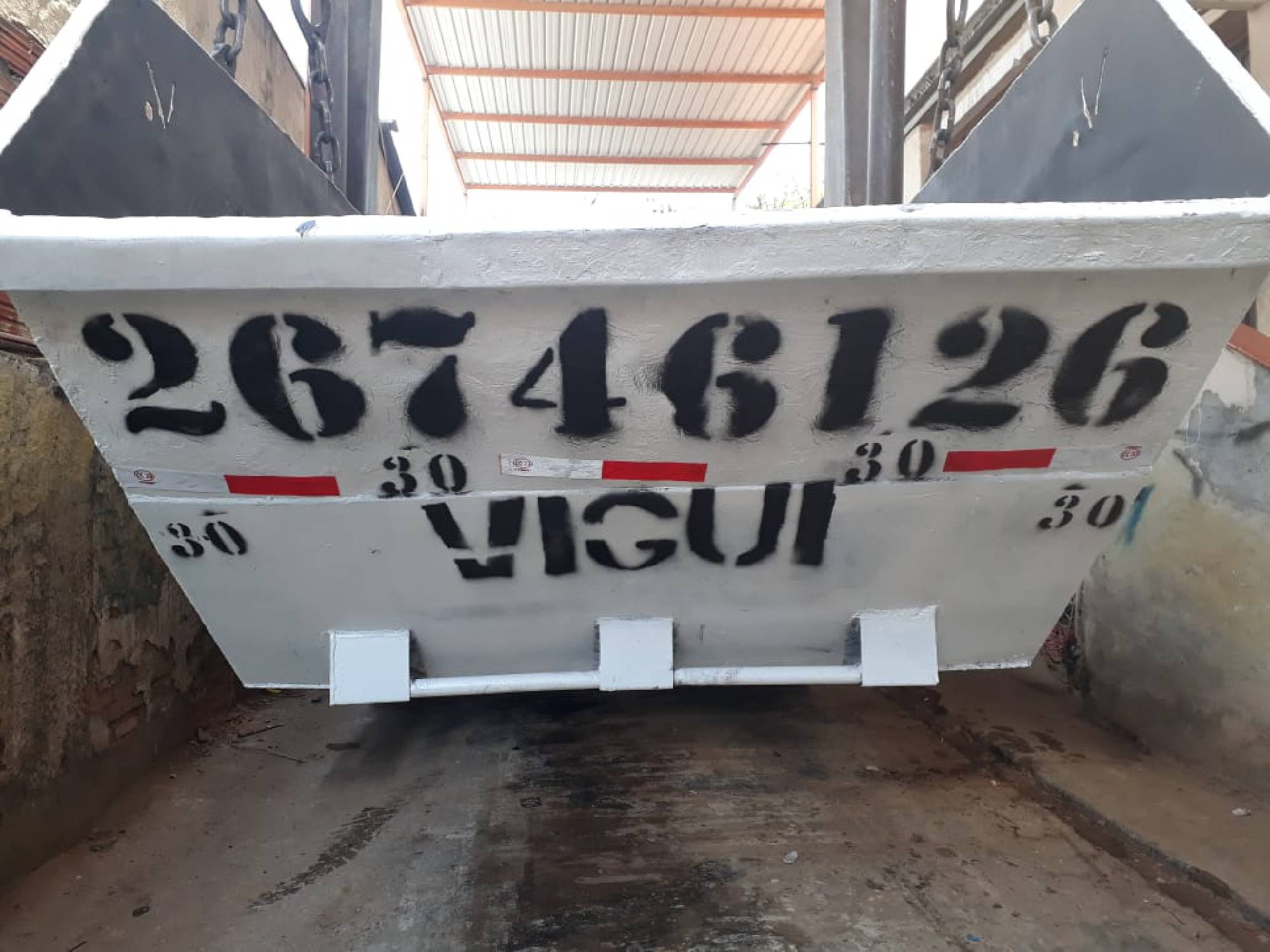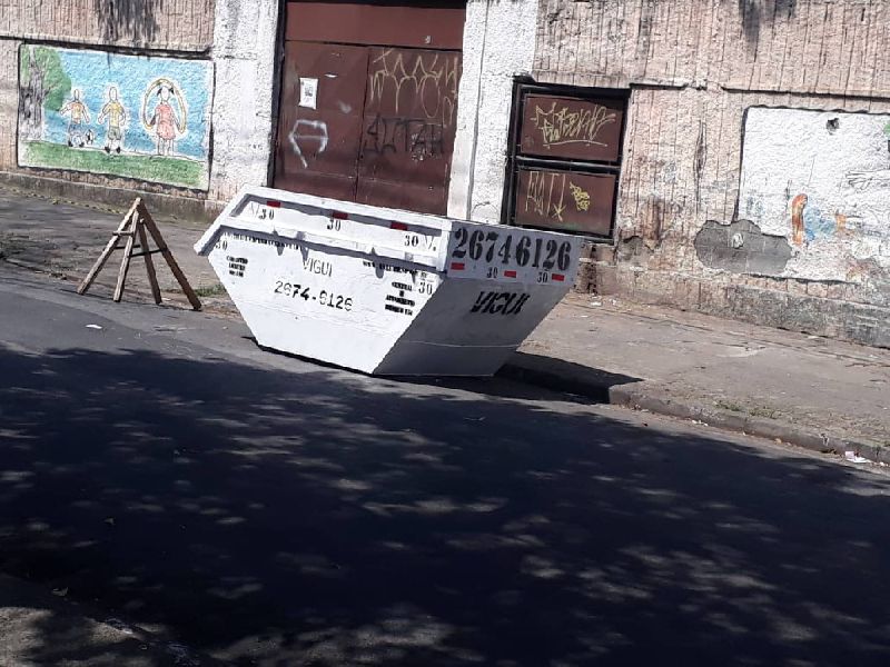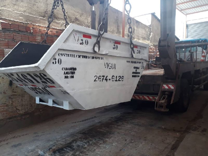 A caçamba é própria para materiais sólidos provenientes de obras ou reformas, como alvenarias, concreto, argamassas, gesso, vidro, etc - e proibido materiais orgânicos, lixo hospitalar e materiais líquidos, como tinta, solventes, etc.